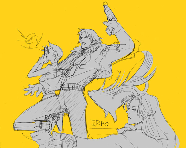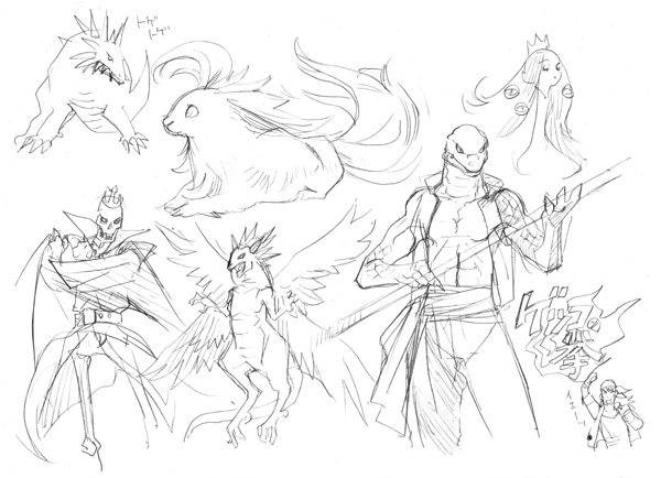 らくがきです。サガフロのモンスターいろいろ+ゲッコのお兄さん。