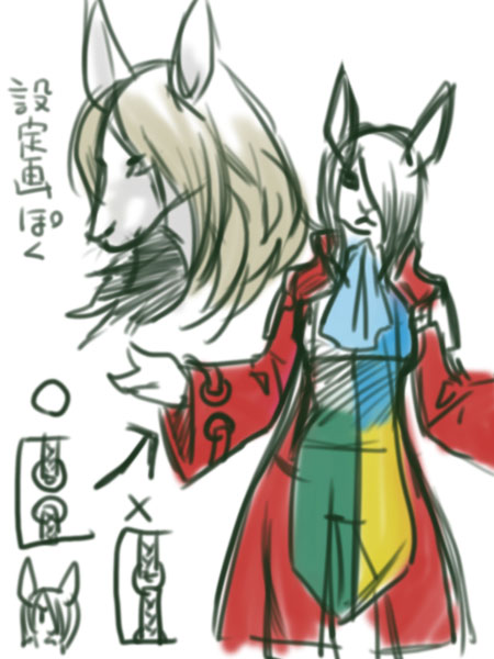 どうも設定どおりの ・長髪・帽子の謎のフサ・上着のベルト繋がってる?