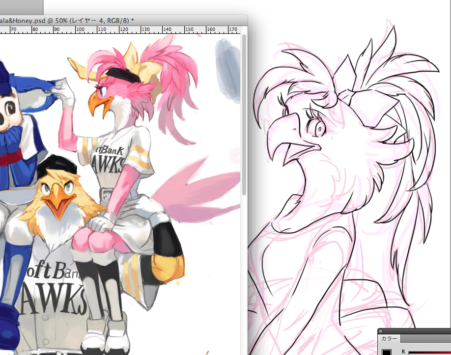 ハリーもかなり鳥によせて描いてるので