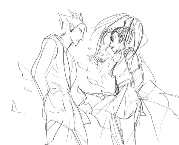 勢い余ってラスボスコンビ絵(ラフ)を描き上げるも